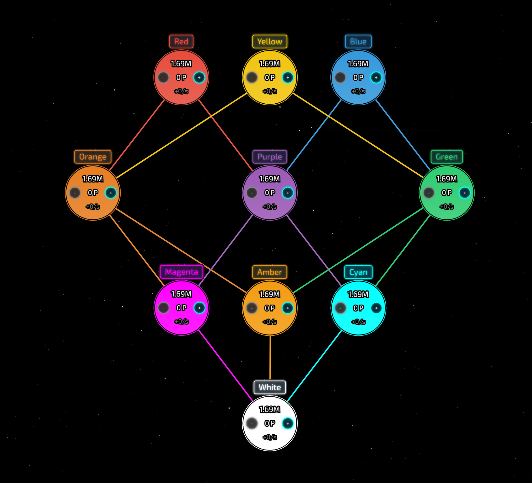 I swear I keep losing mixer efficiency. Are they being consolidated into "all mixer efficiency"? That stat also doesn't seem to work. Efficiency means 'uses less of the previous color' right? The base amount used is 0.5/s of two different colors to make 1.0/s of the next, right? So if I output 100/s of all three secondaries, the base used is 100/s of all three primaries, right? Meaning if I have ANY amount of mixer efficiency, I should be using LESS than 100/s of the primaries, right? So if I'm midgame and have +150% All Mixer Efficiency, the inputs used should be less than half that, right?
