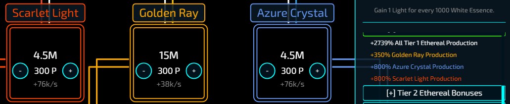 I also noticed that buying "Star Upgrades" from the column on the right for things like "red well production" or "orange mixer more efficient with ingredients" has NO effect, just wasting Light points.